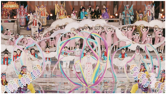 先进的设备使演员表演区域从舞台扩展到更大的空间,而AR等先进科技手段的运用则为晚会提供了更多的可能。潘宁介绍,晚会开场主题秀《山河百景》将采用“一镜到底”的拍摄方式。镜头先跟着园区入口处的舞龙舞狮等民俗表演一路前行,进入主会场前方的汉潮街。在这里,100多位汉服爱好者将通过着装和表演,还原古代的上元佳节场景。接着,镜头穿过熙攘的观灯民众和戏曲绝技绝活表演,到达主会场。最后,再用AR技术从圆月中引出由戏曲演员和舞蹈演员组成的宏大场面,配合戏曲、舞蹈、烟火、灯光秀等,展现“上元之夜,山河百景”的热闹画面。
