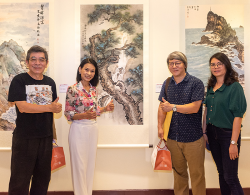 (左起)玄奘大学艺术设计学院前院长顾兆仁、中国画学研究会理事长吴欐樱、玄奘大学教授刘信义
