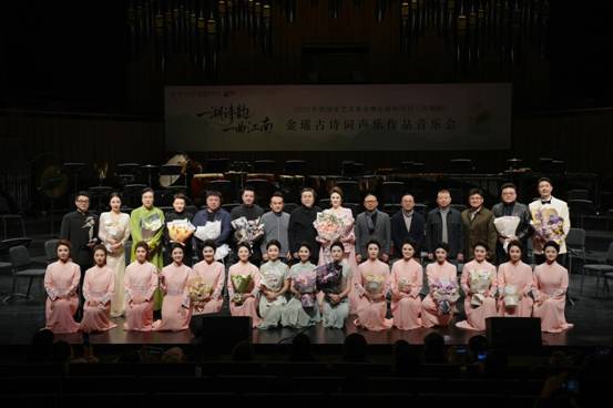 2025年11月27日晚,“一湖诗韵一曲江南”——金瑶古诗词声乐作品音乐会在浙江音乐学院音乐厅上演。本场音乐会系国家艺术基金2025年度舞台艺术创作资助项目《西湖赋》的重要演出,以声乐为媒介,将古典诗词与现代民族音乐相融合,展开一场与江南诗意的当代对话。